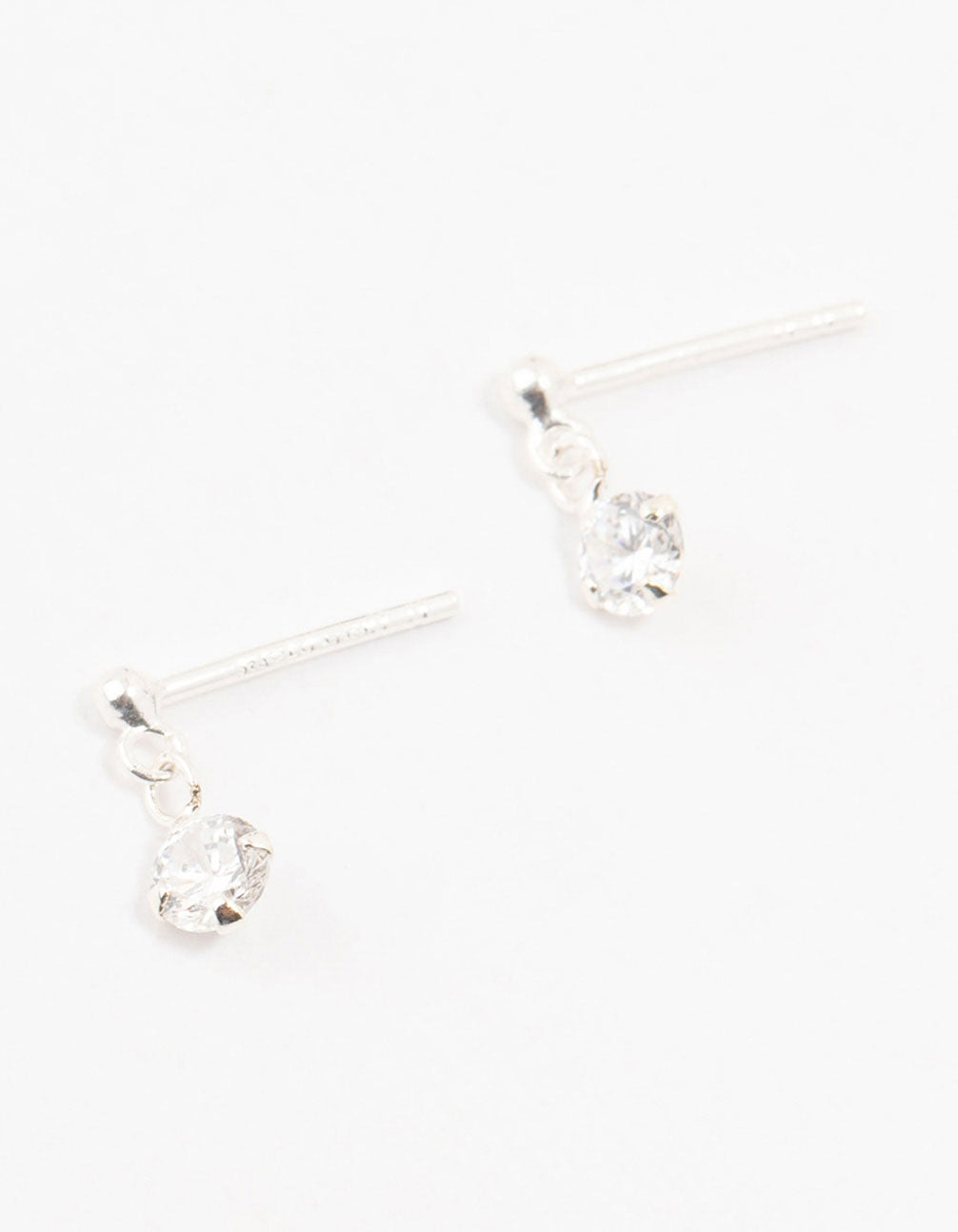 Round Cubic Zirconia Drop Sterling Silver Earrings