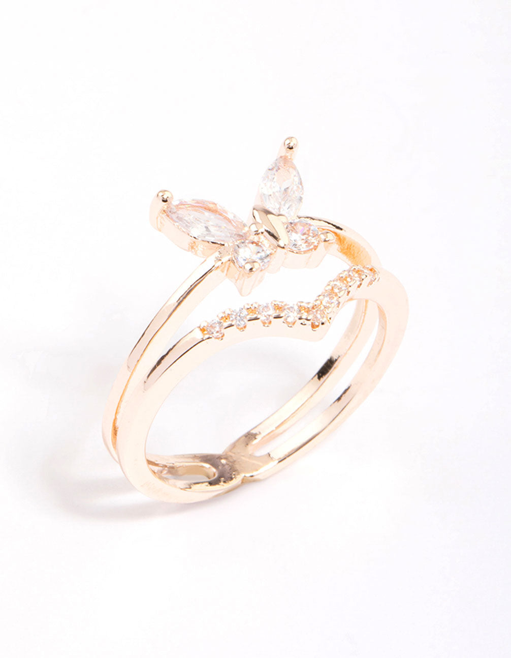 Rose Gold Plated Cubic Zirconia Butterfly Double Band Ring