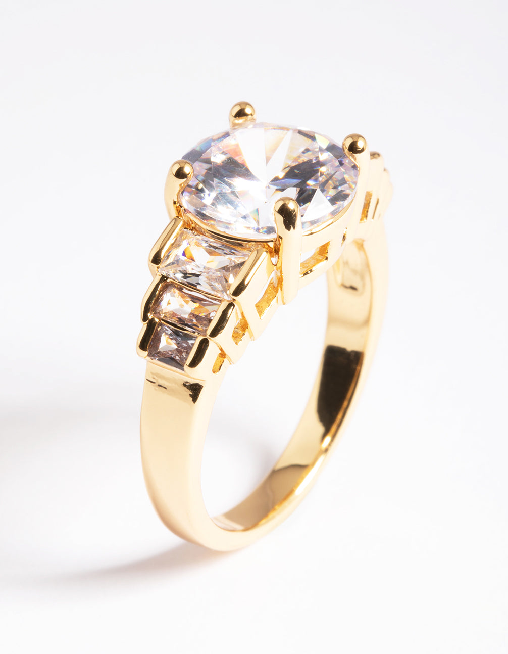 Gold Plated Cubic Zirconia Large Solitare Ring
