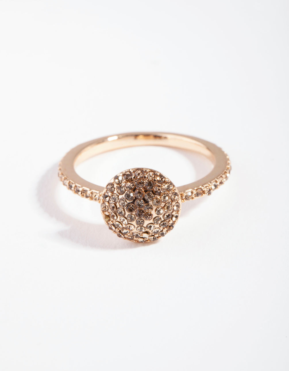 Mix and match with our stackable rings! Wear it on its own or stack it with others for a curated look. This ring features a stunning diamante embellished round lolly design in a gold-tone.