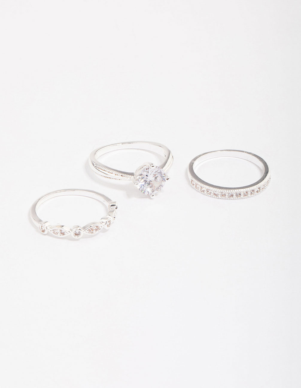 This silver-plated ring pack contains three individual rings, embellishment with round-shaped cubic zirconia crystals for a hint of glamour.