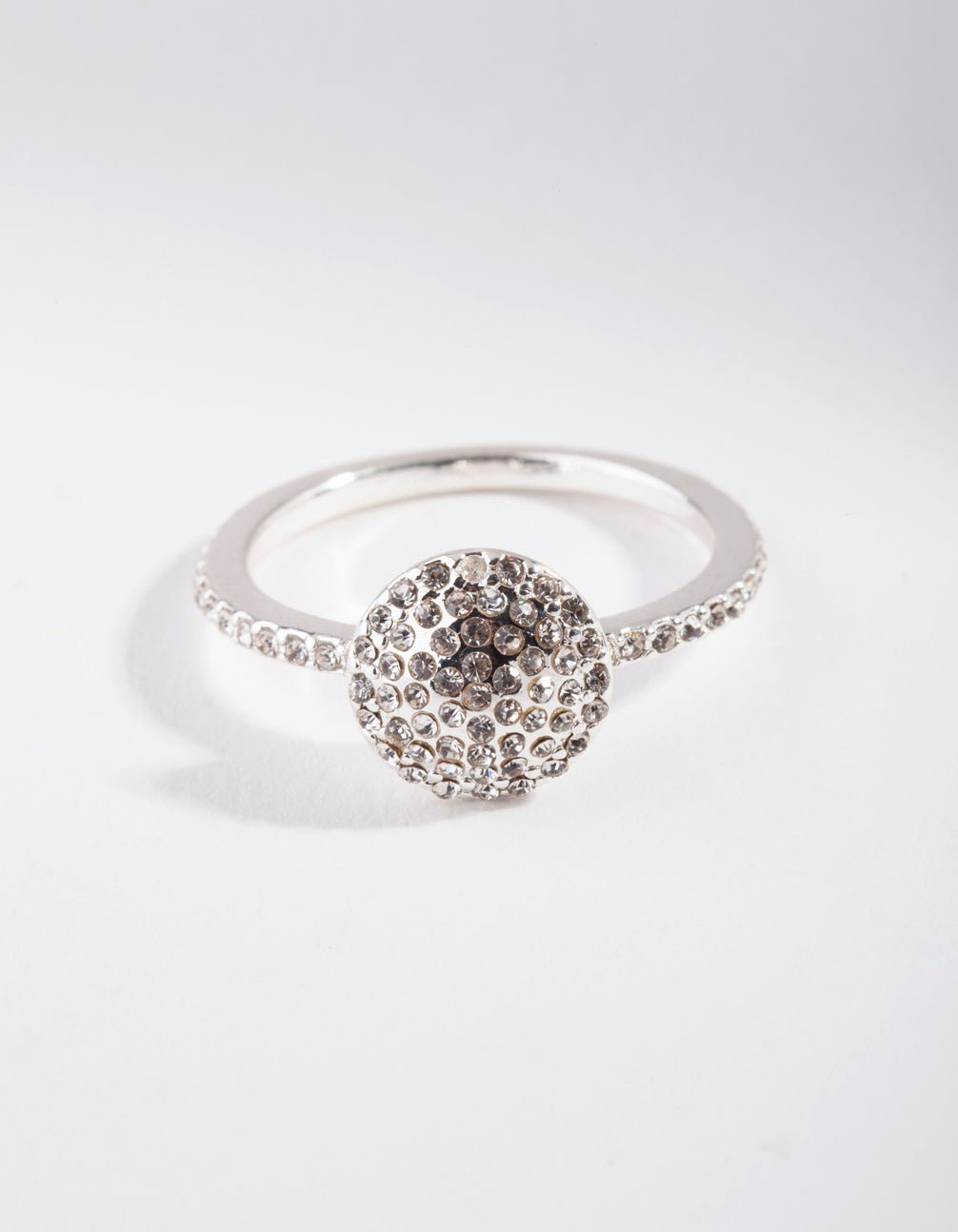 Mix and match with our stackable rings! Wear it on its own or stack it with others for a curated look. This ring features a stunning diamante embellished round lolly design in a silver-tone.