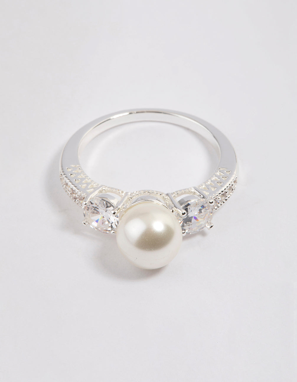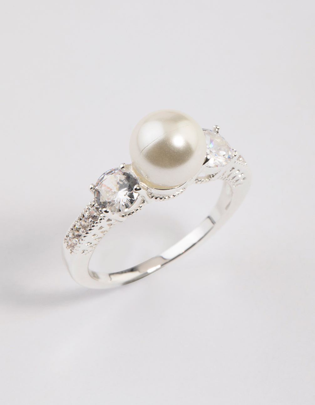 This enchanting ring features a stunning, silver-plated setting and is embellished with a large pearl in the centre for a sophisticated touch.