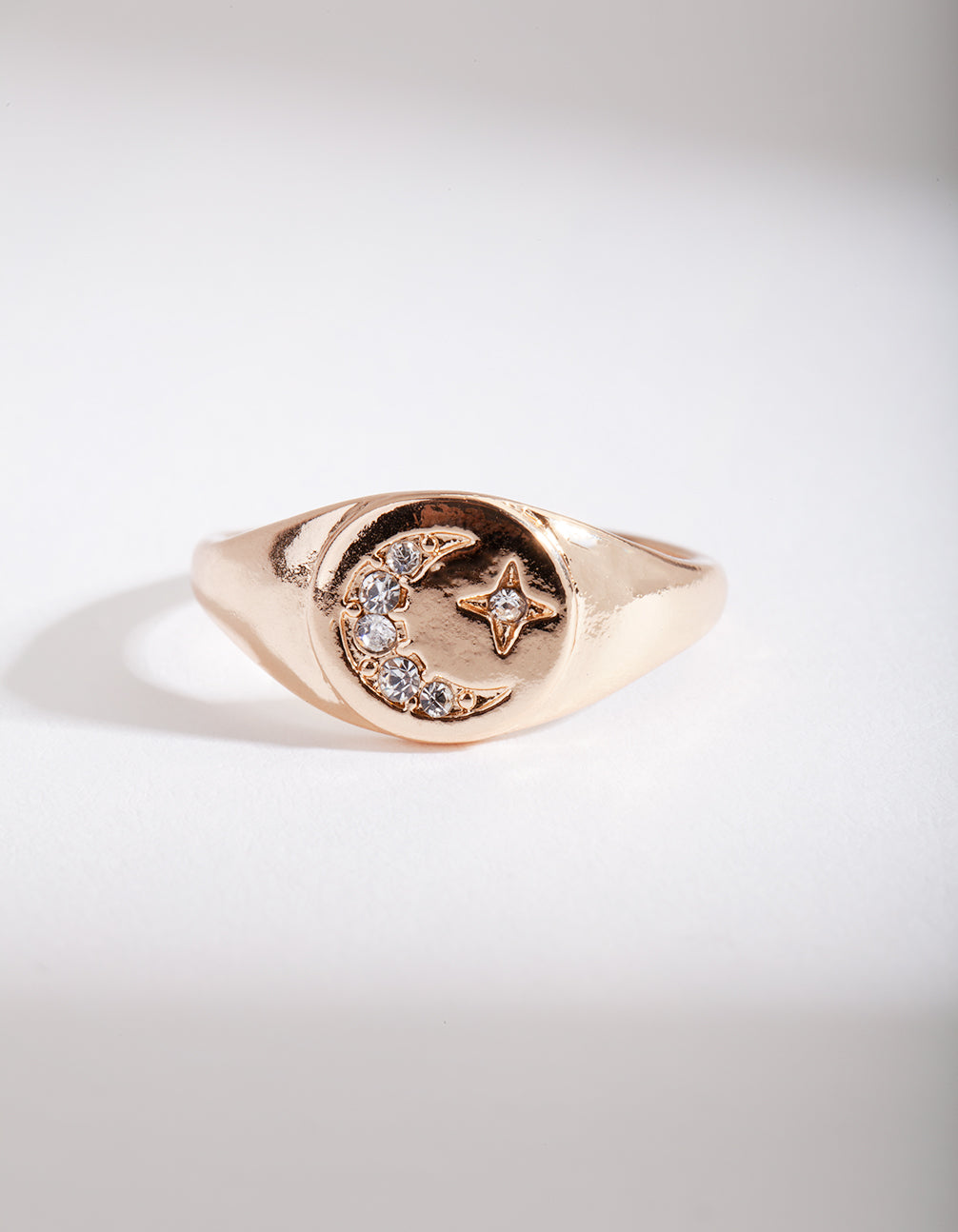 Make a statement in a stunning fashion ring. Stack with other styles for extra impact or wear alone for a refined addition to your ensemble. This ring features a celestial design in a gold tone.