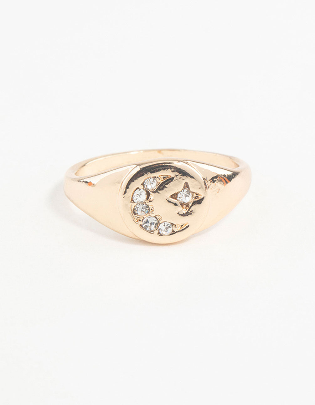 Make a statement in a stunning fashion ring. Stack with other styles for extra impact or wear alone for a refined addition to your ensemble. This ring features a celestial design in a gold tone.
