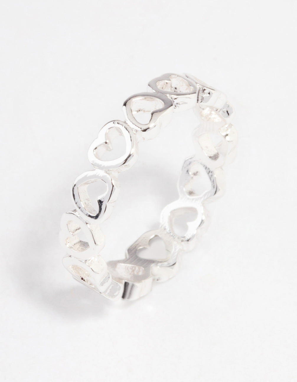 Add a touch of charm to your look with this Silver Alternating Heart Ring. This stylish band features a delicate design of alternating hearts, perfect for everyday wear or adding a romantic vibe to any outfit. Made from sleek silver, it's a versatile piece of jewellery that pairs beautifully with casual looks or dresses up your evening ensemble. Wear it solo for a subtle statement or stack it with other rings for a stylish layered style. Ideal for gifting or treating yourself, this heart-shaped silver ring is as playful as it is timeless. Perfect for anyone who loves elegant yet youthful accessories!