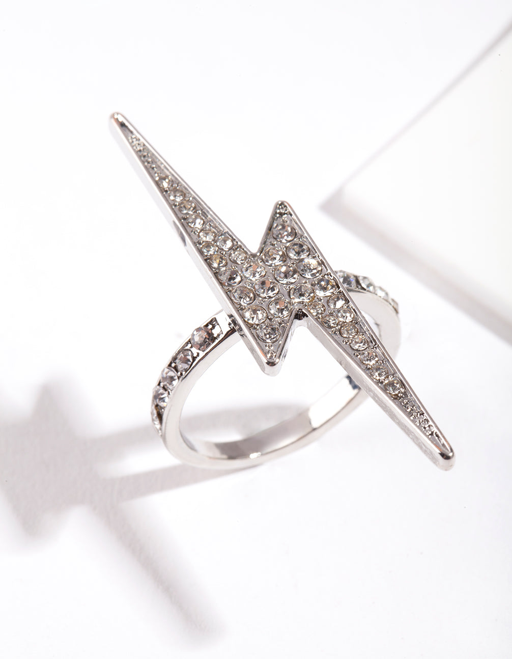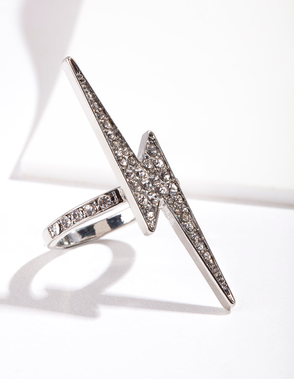 Make a statement with one of our stunning fashion rings. Stack with other styles for extra impact or wear alone for a refined addition to your ensemble. This ring features a diamante embellished lightning bolt design in a silver silver-tone setting.