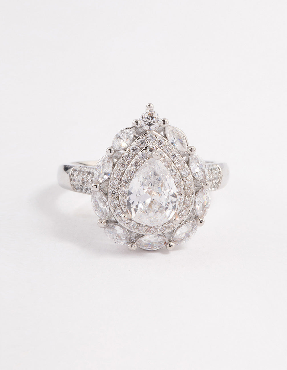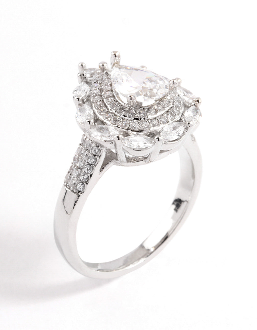 Silver Flare Pear Cubic Zirconia Ring