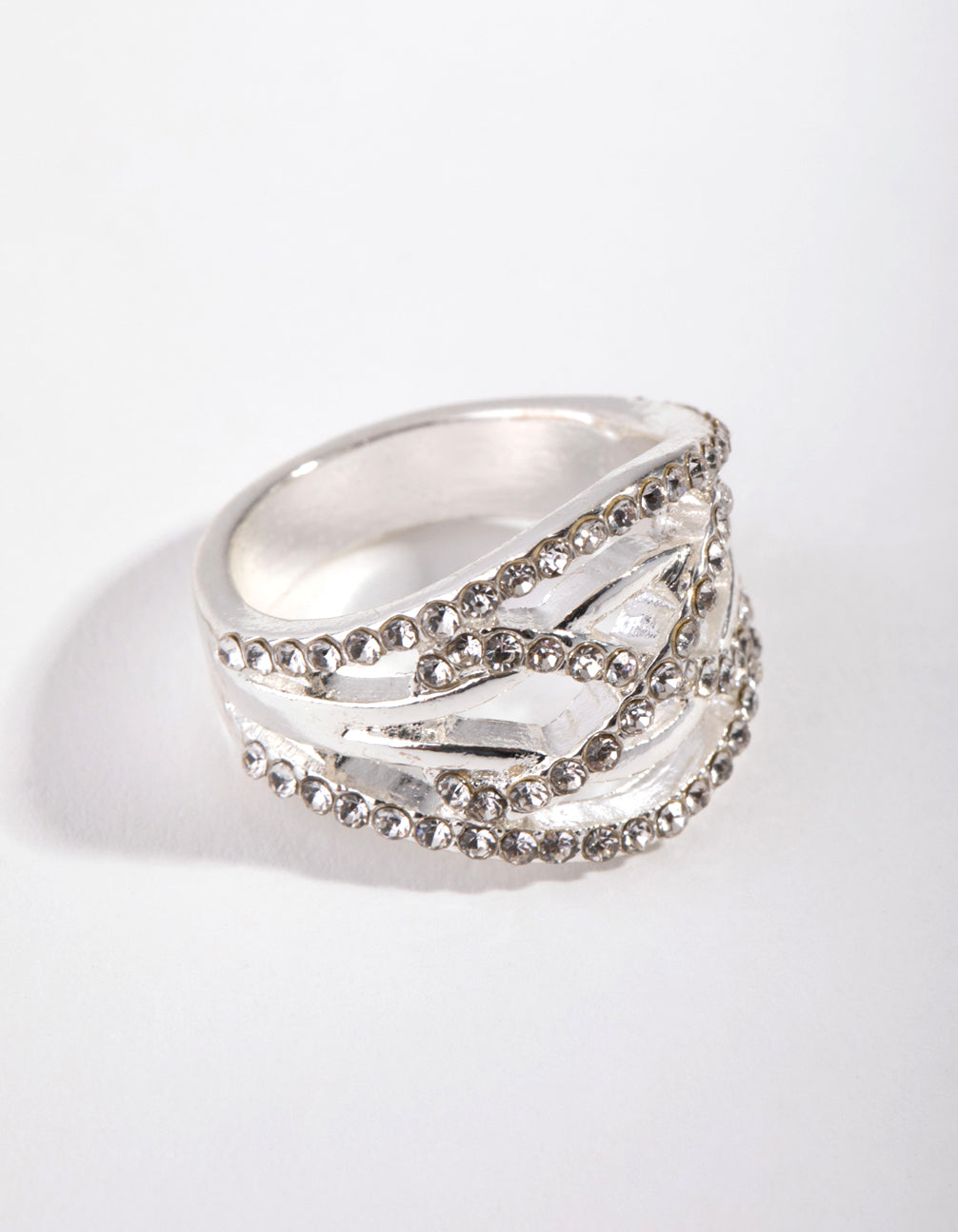 Raise your ring game with this diamante-embellished silver-toned ring. This ring features a unique criss-cross shape on a silver-toned setting. This ring is destined to add an air of opulence to any ensemble!