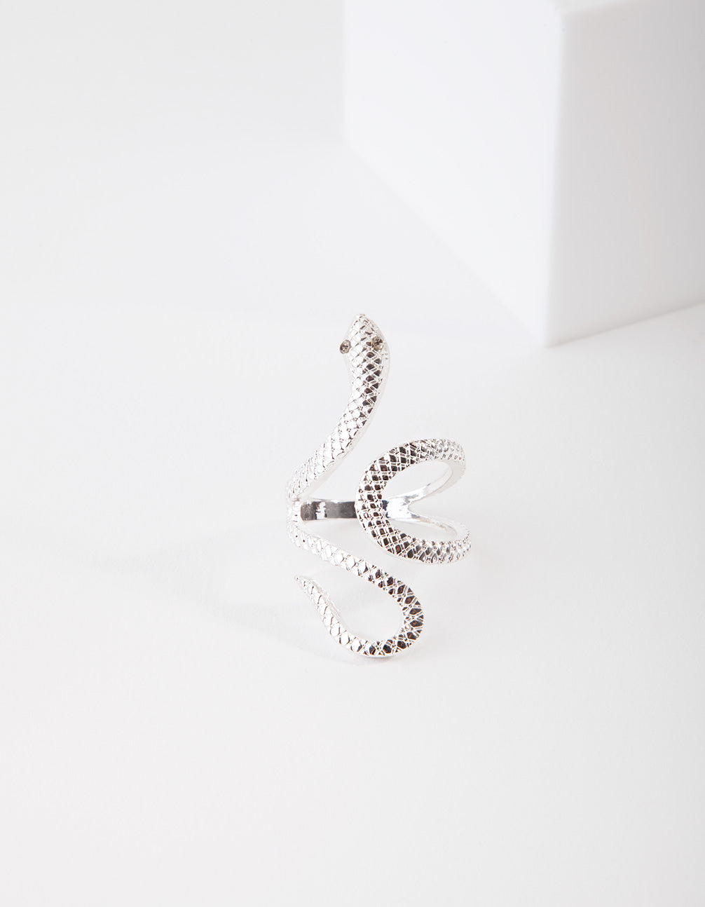 Make a statement in a stunning fashion ring. Stack with other styles for extra impact or wear alone for a refined addition to your ensemble. This ring boasts a textured silver-toned snake design.