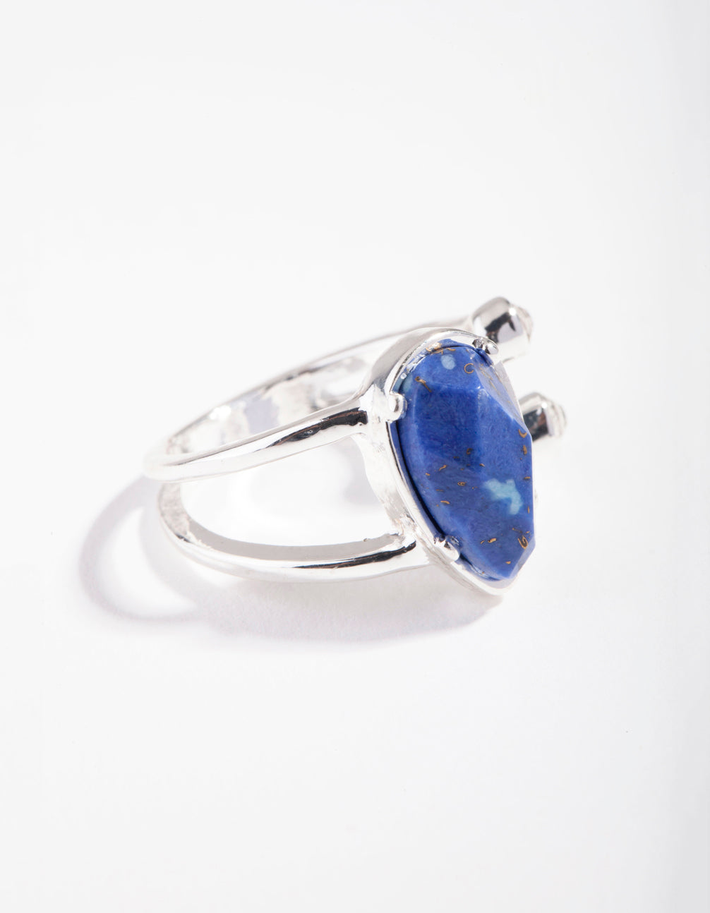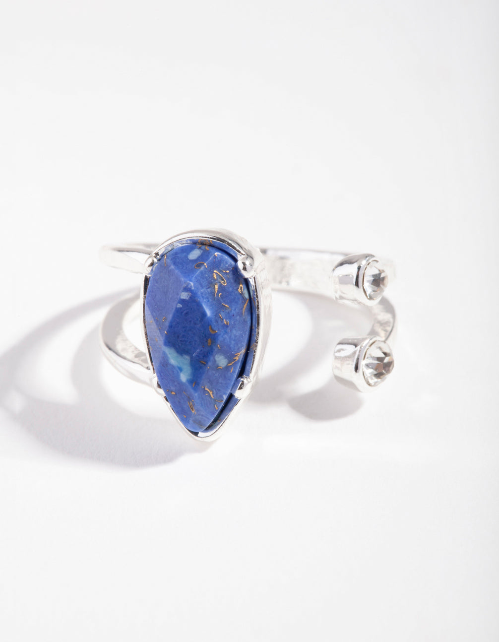 Step into summer with playful rings that have major 90s vibes perfect for festivals, summer nights or lounging poolside. This gorgeous silver-toned statement ring boasts a wrap-around design and a rough-cut blue stone. Stack it with other retro-inspired rings for a fun and funky look!