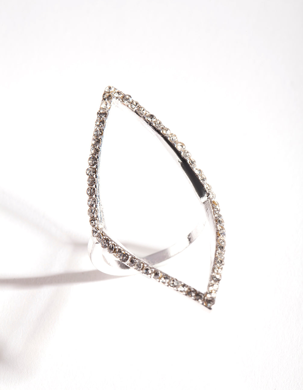 Make a statement at your next event with this eye-catching silver-toned open faux-diamond ring.
