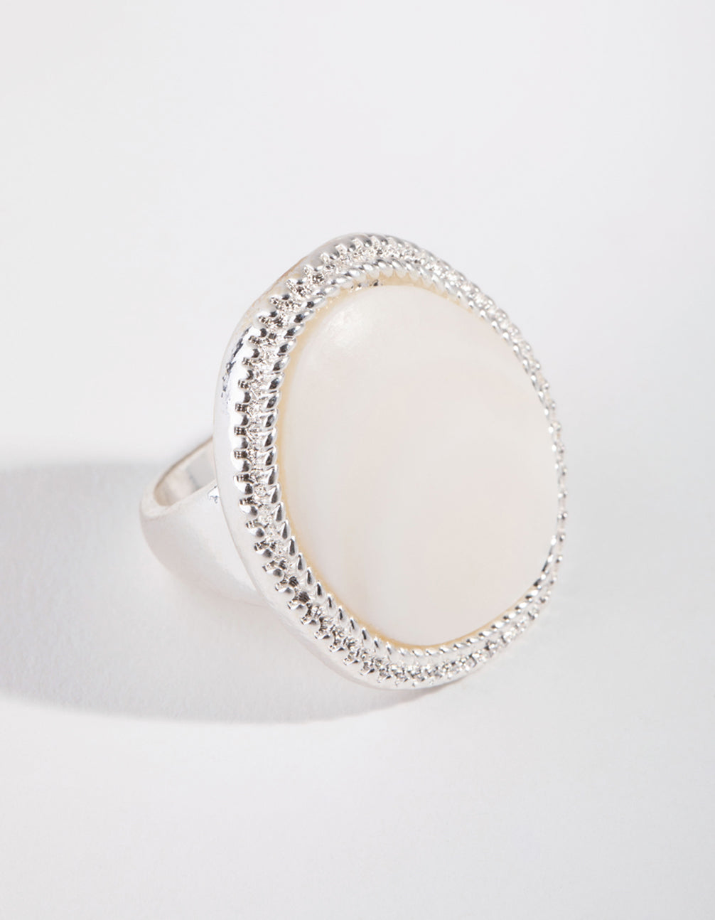 Elevate your ensembles with a stunning statement ring! This silver-toned ring features a faux-pearl, shield centre that is sure to draw attention. Pair with your favourite silver-toned accessories for the ultimate look.