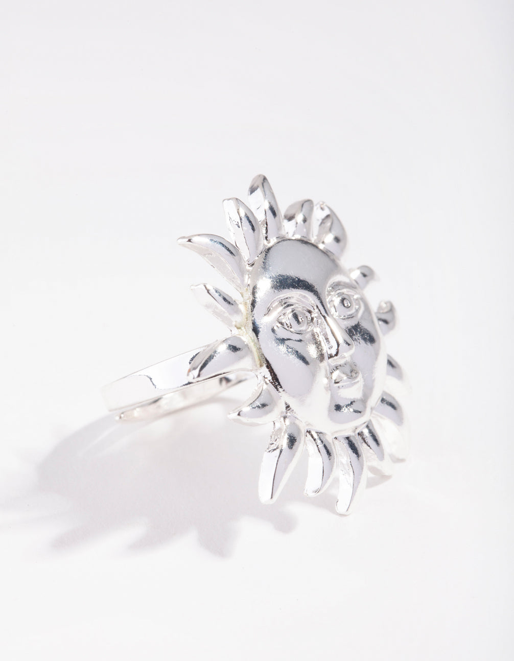 Slip into summer with playful ring designs with major 90s vibes perfect for festivals, summer nights or just lounging by the pool. This gorgeous silver-toned ring features a detailed sun design.