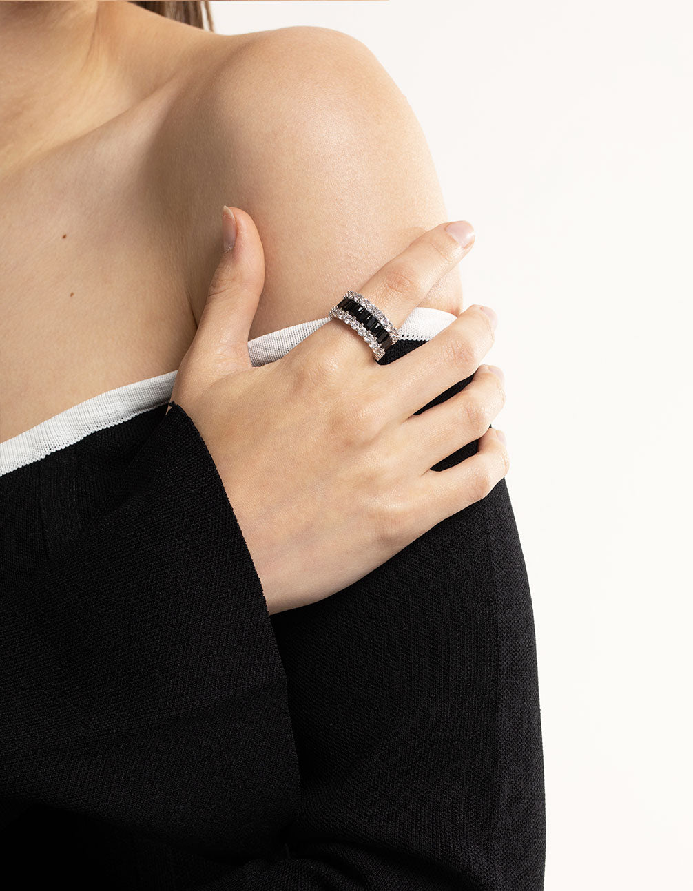 - Style this luxe ring with a pieces from our Black on Black collection for a cohesive, drama-filled look.