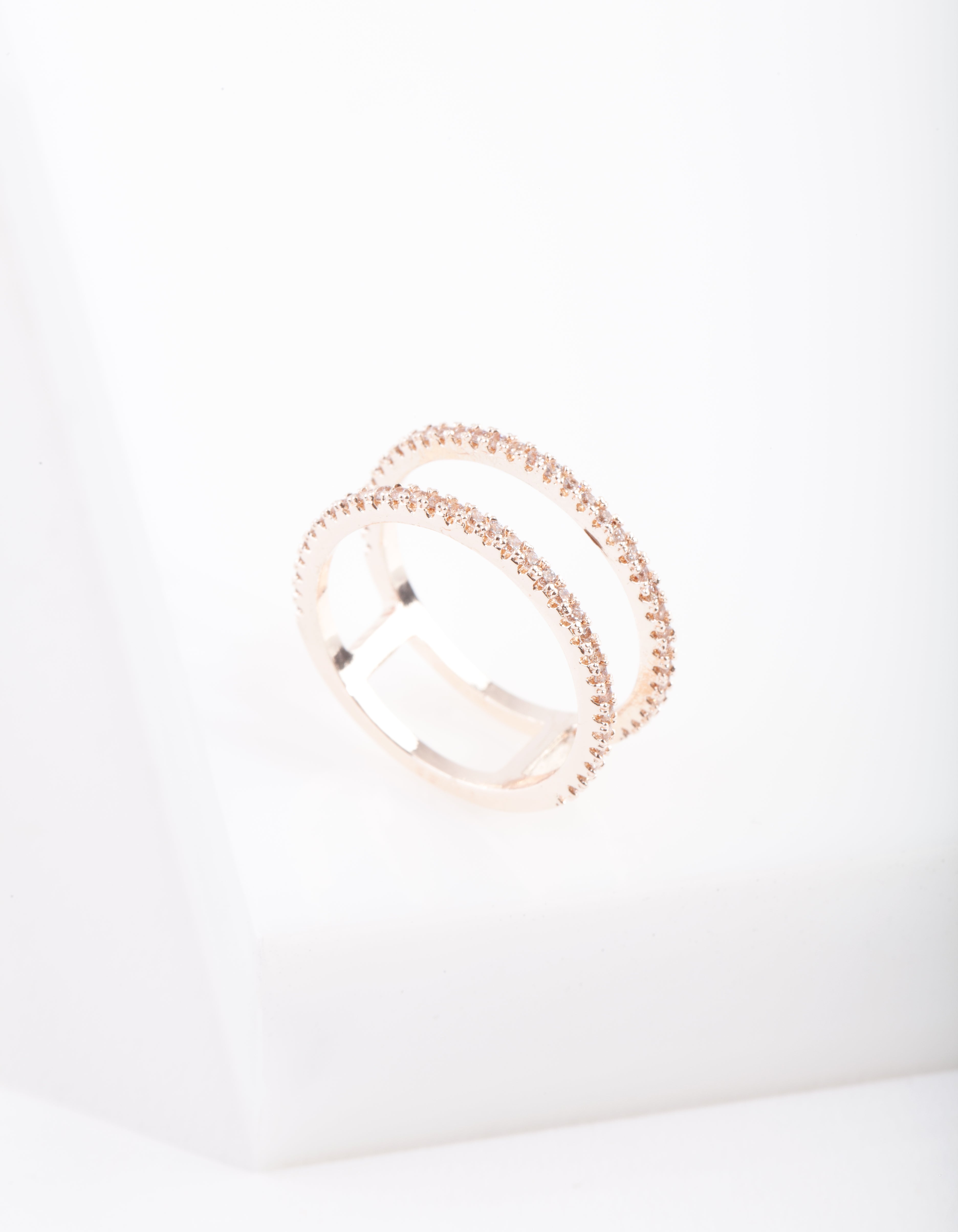 Complete your look with our beautiful fashion ring. Stack with other styles or wear it alone for a refined addition to your ensemble. This ring features a cubic zirconia embellished double band design in a rose gold-tone setting.