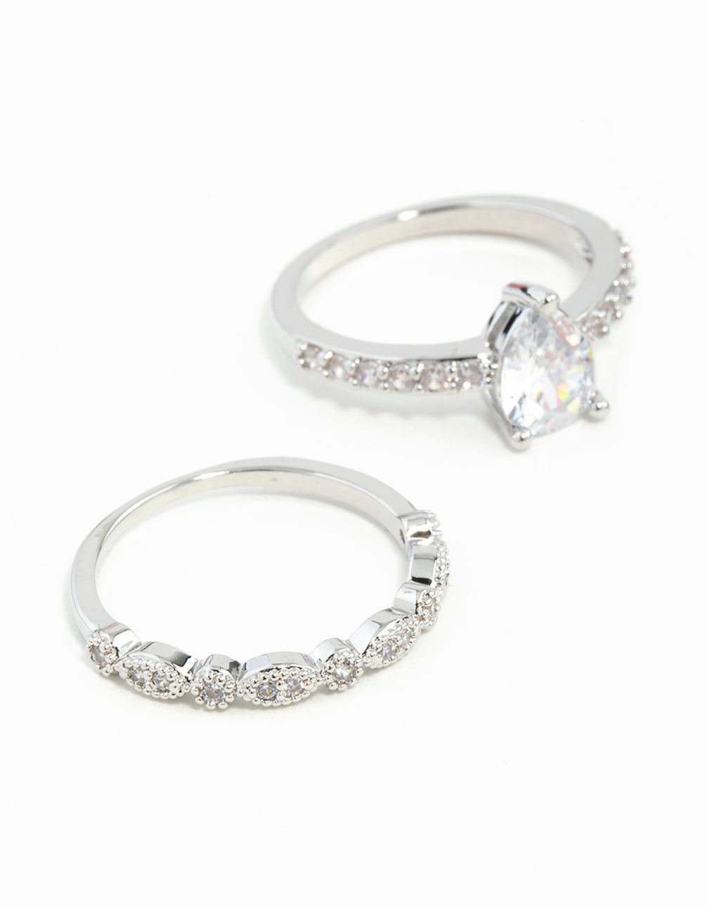 Stack it up with this silver-toned ring pack embellished with cubic zirconia stones. Cubic Zirconia stones provide a luxury look without the high-end price point. Add some sparkle to your daily life!