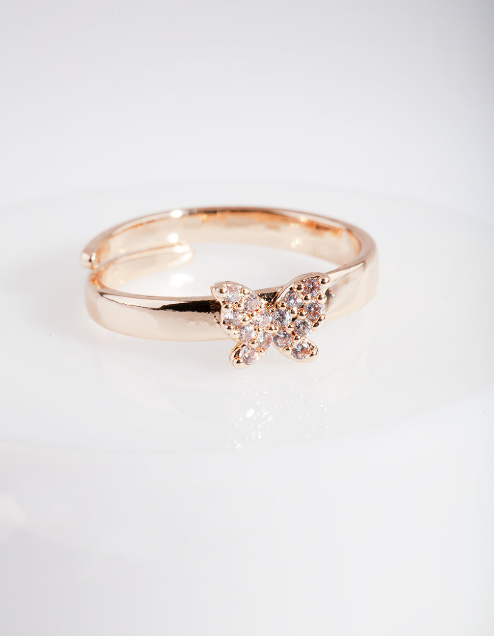 Make a statement in a stunning fashion ring. Stack with other styles for extra impact or wear alone for a refined addition to your ensemble. This ring features a gold-toned butterfly design with cubic zirconia embellishments.