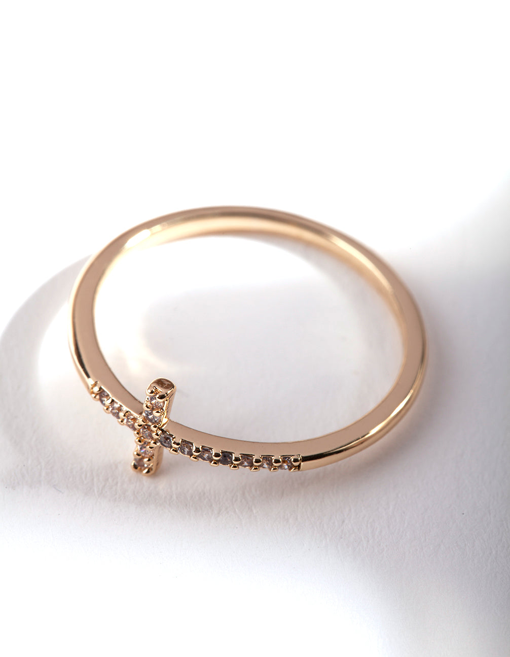 With the addition of Cubic Zirconia, create a luxurious look with this gold-toned cubic zirconia cross ring.