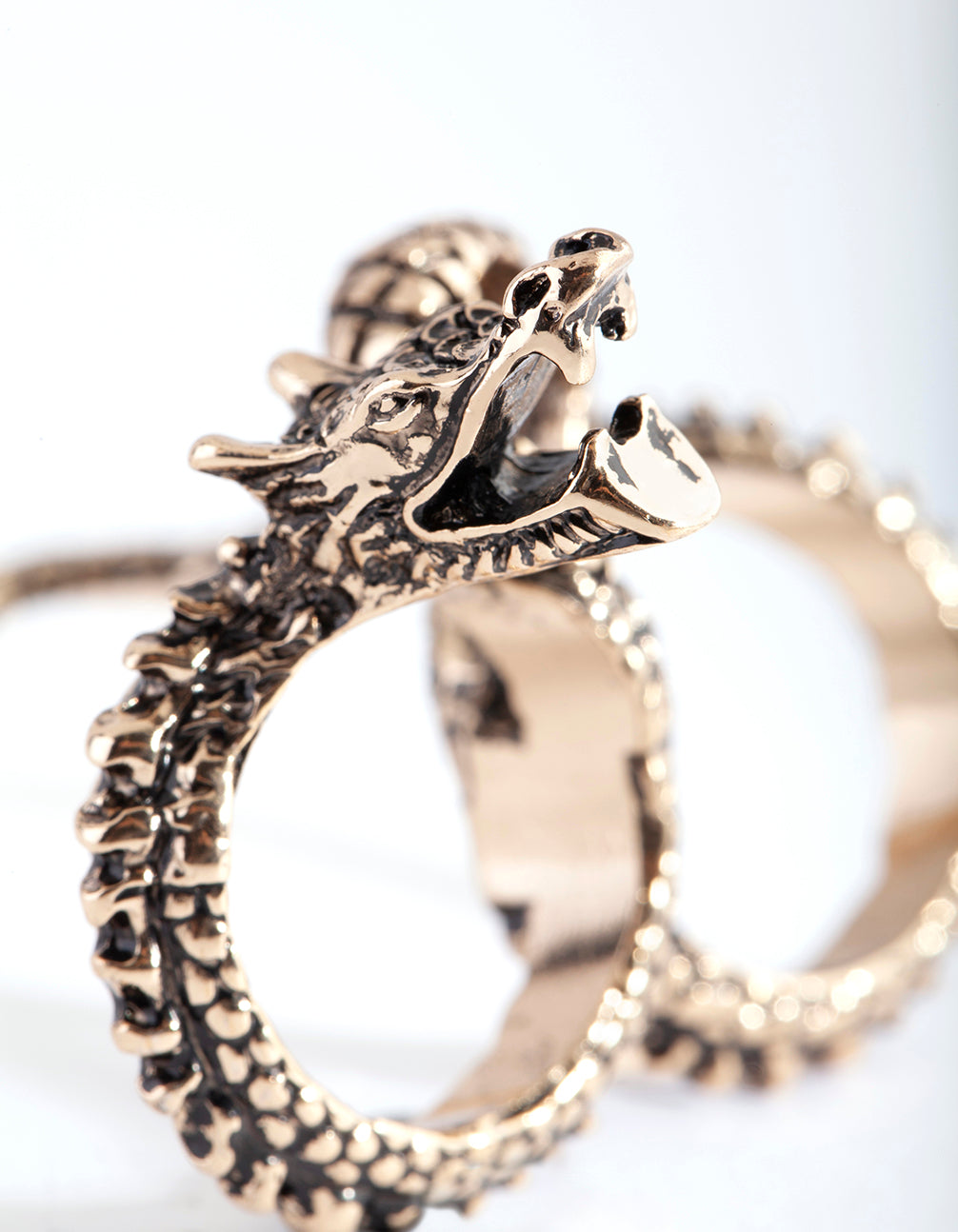 Antique Gold Multifinger Etched Dragon Ring