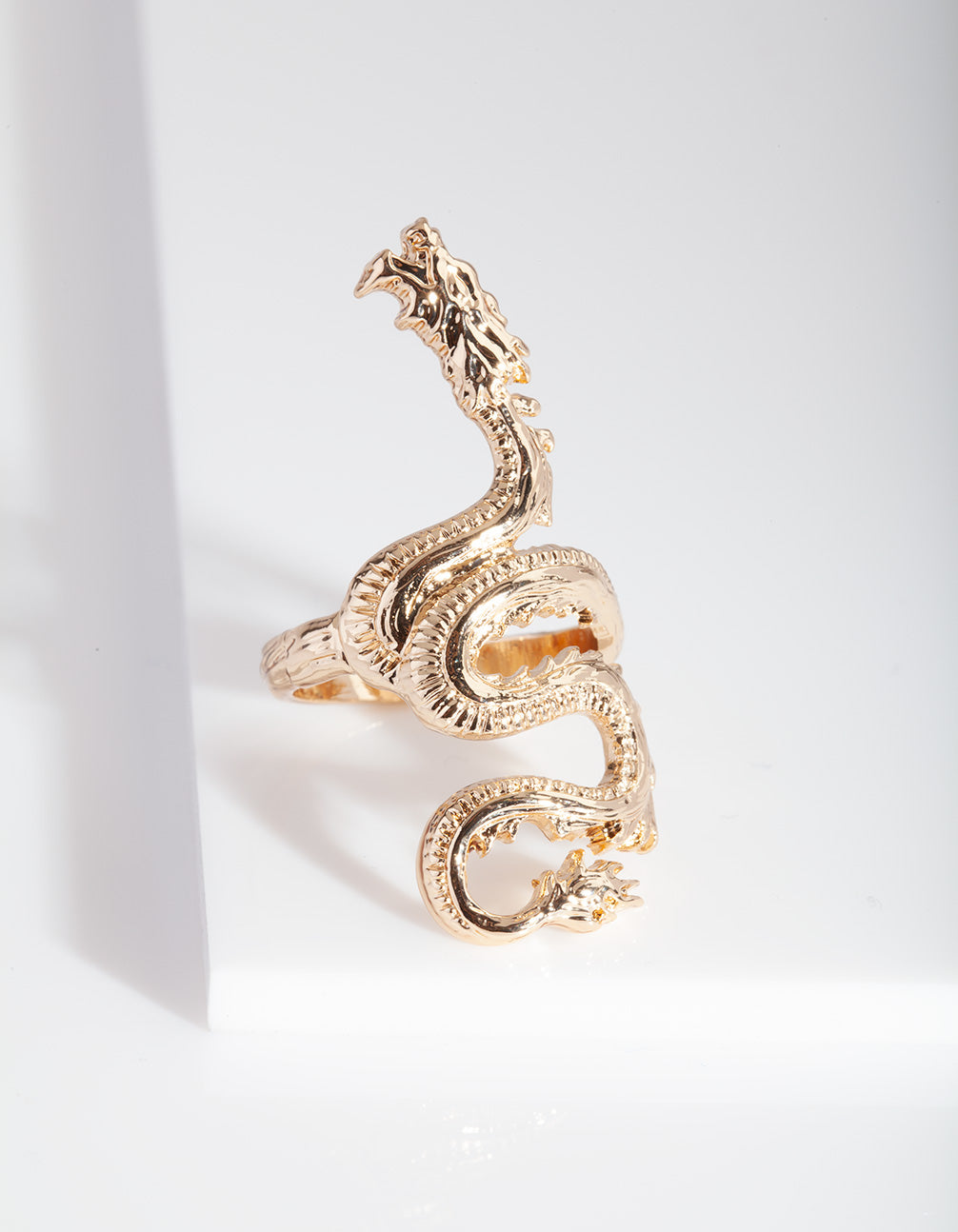 Make a statement in a stunning fashion ring. Stack with other styles for extra impact or wear alone for a refined addition to your ensemble. This ring features a gold-toned dragon design.