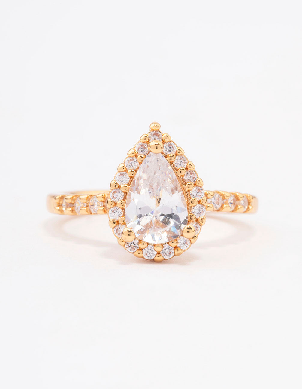 Gold Plated Classic Pear Cubic Zirconia Engagement Ring Gold Plated Classic Pear Cubic Zirconia Engagement Ring Gold Plated Classic Pear Cubic Zirconia Engagement Ring