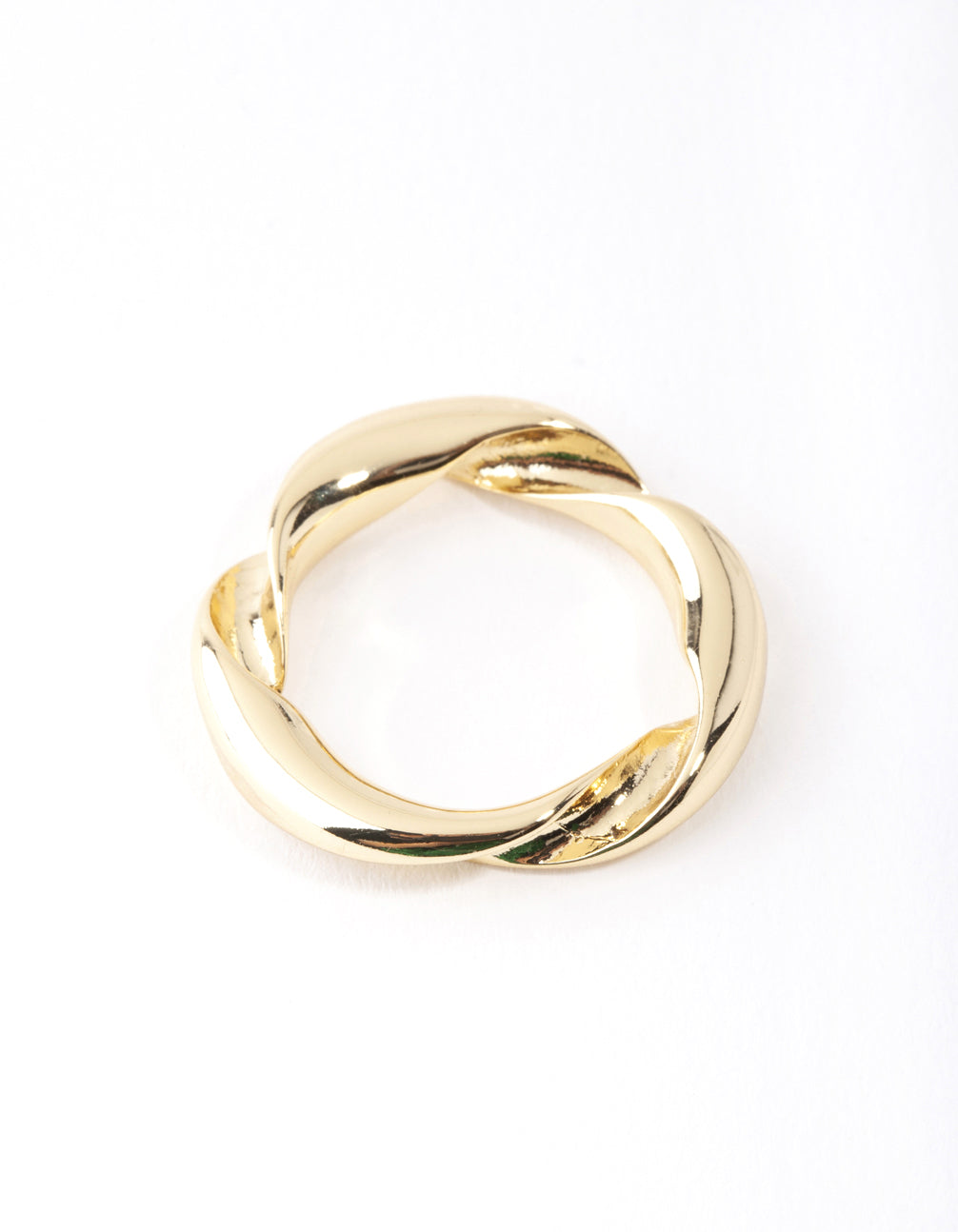 A collection of precious pieces made in the finest quality metal platings. This gold plated ring features a twist band design and is perfect to wear on its own or stacked with other rings.