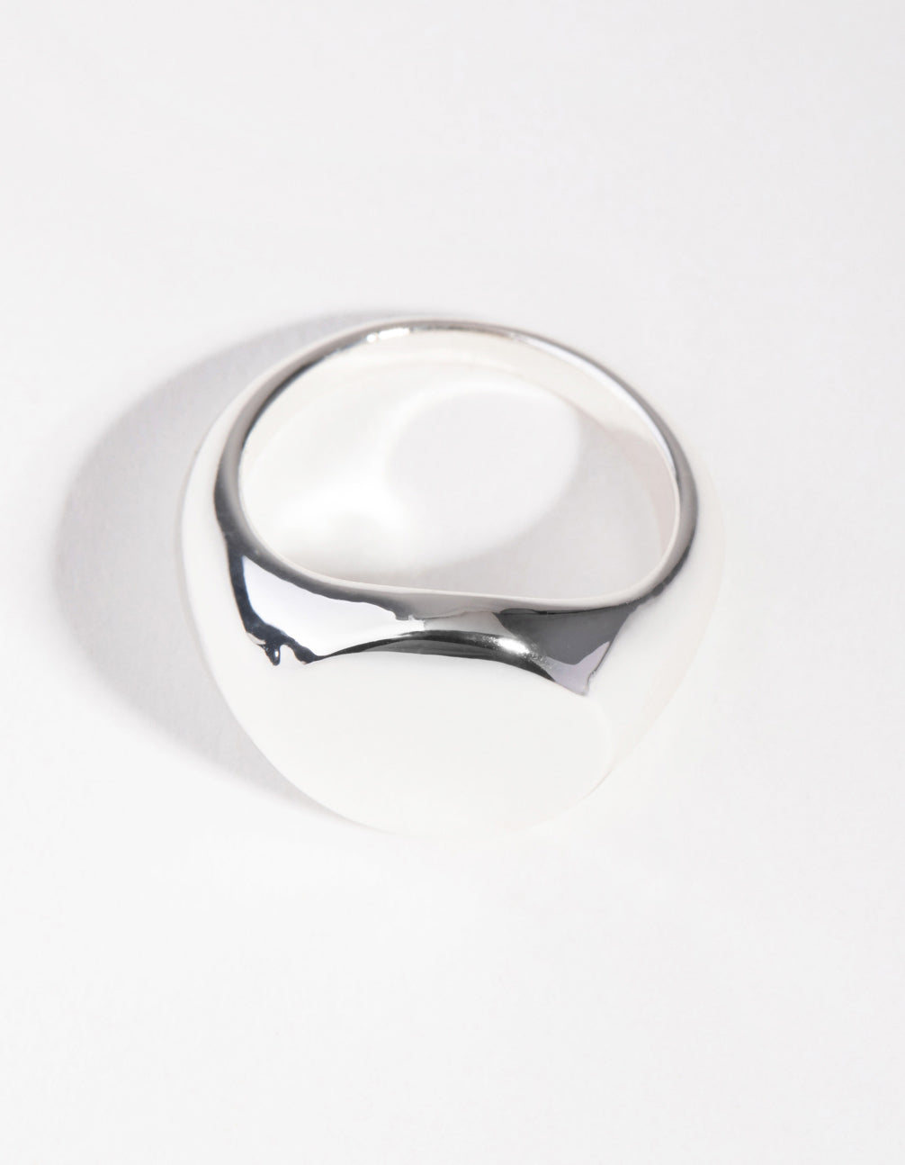 Round out your collection with a classic ring! On a silver-tone, this ring boasts a thick shape with a shield-shaped centre. Perfect for stacking and layering with your favourite pieces.