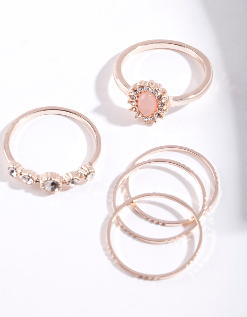 Rose Gold Stone Diamante 5-Pack Ring Stack