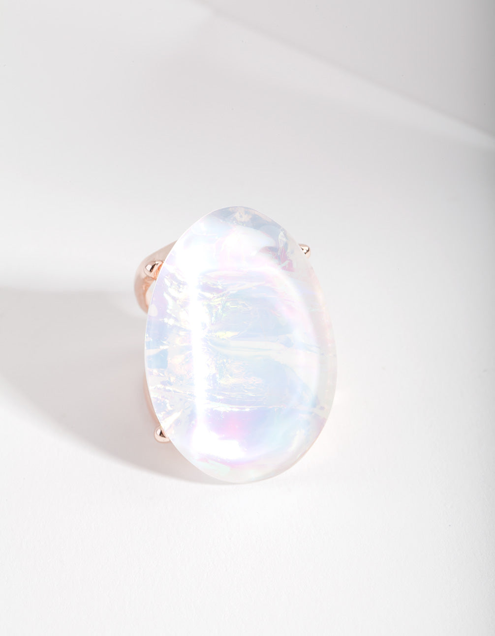 Add some fun to your evening looks with this cocktail ring. This style boasts a faux white stone with a rose-gold-toned setting.
