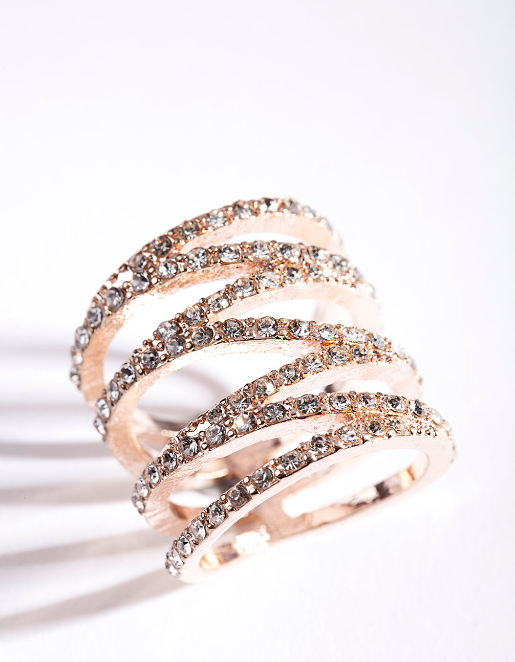 Create a glamorous look and make a statement with this rose-gold-toned zig zag diamante row ring.