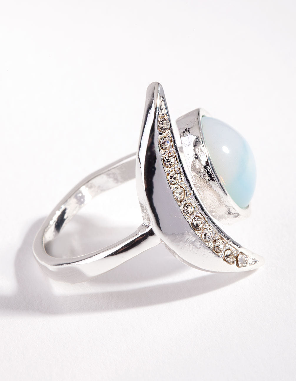 Silver Crescent Moon Stone Ring
