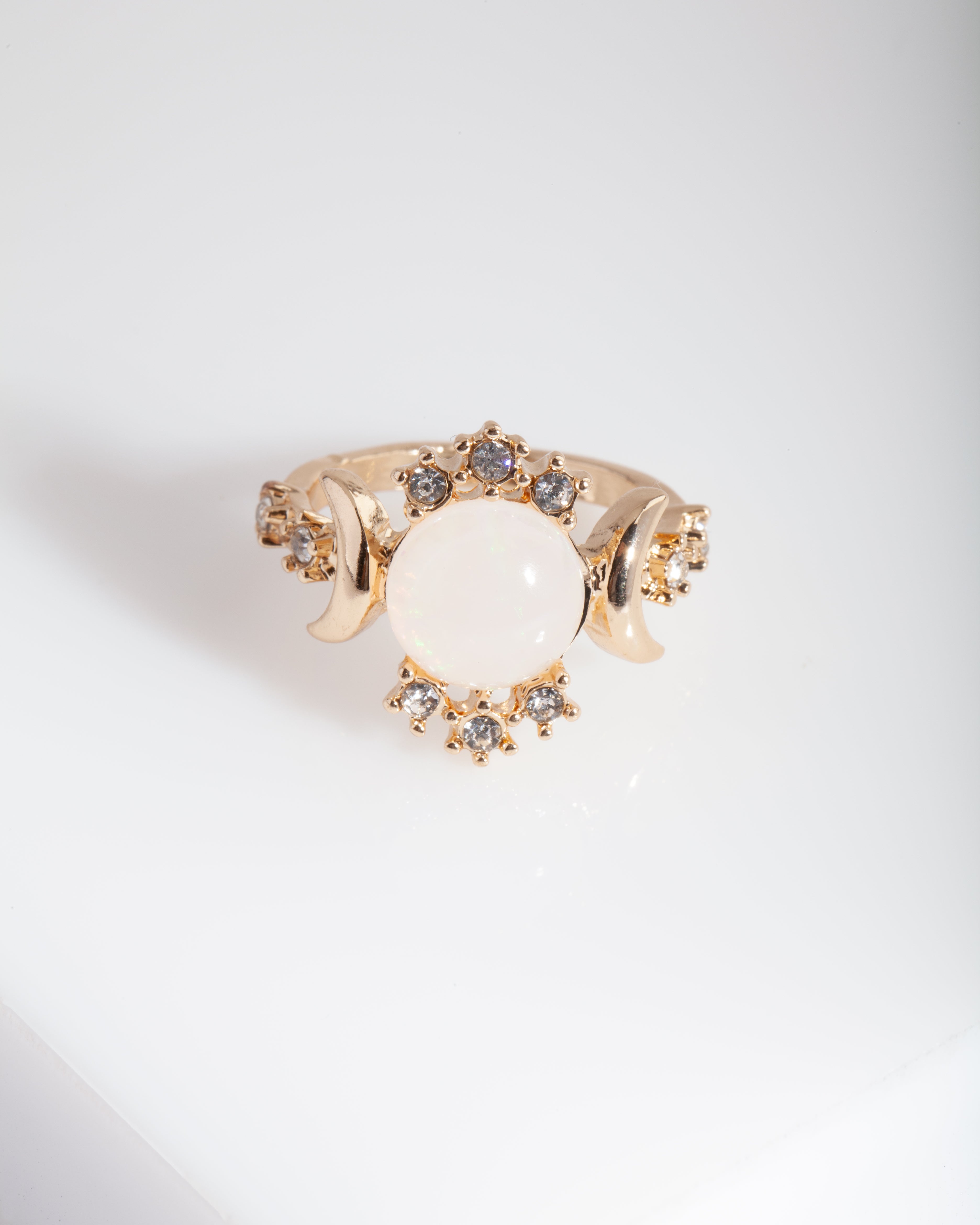 Make a statement in a stunning fashion ring. Stack with other styles for extra impact or wear alone for a refined addition to your ensemble. This ring features a gold-toned setting with a celestial design.