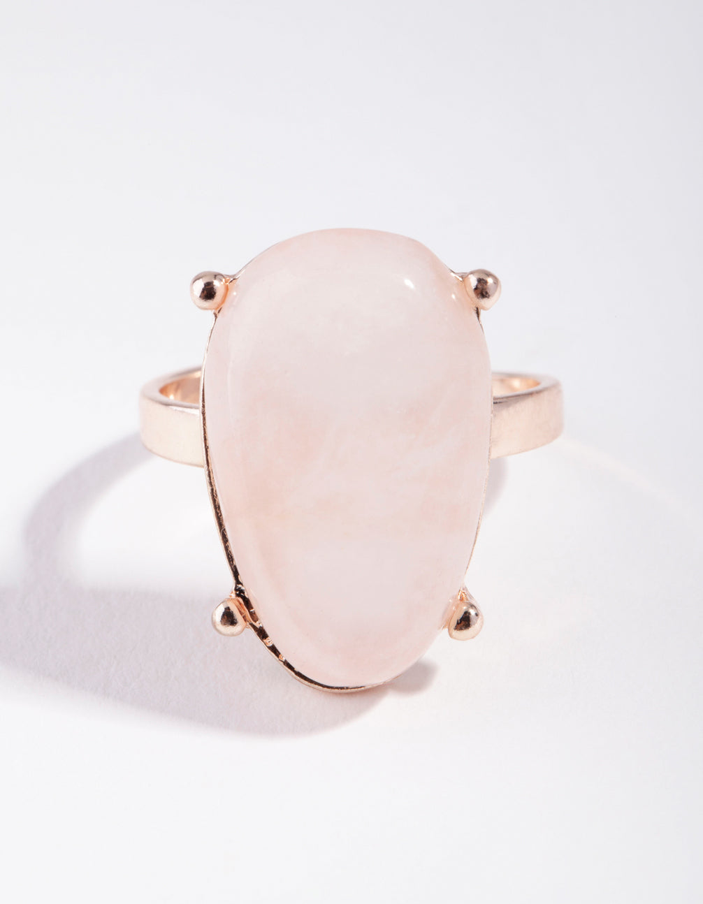 Complete your look with a statement fashion ring. This rose gold-toned ring features a large pink oval stone design and is perfect on its own or stacked with others.