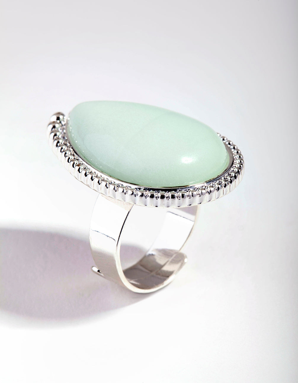 Invest in some vintage-style rings to add some retro glam to your looks! This gorgeous silver-toned ring features a large pale green coloured stone rimmed with a delicate ball detail.