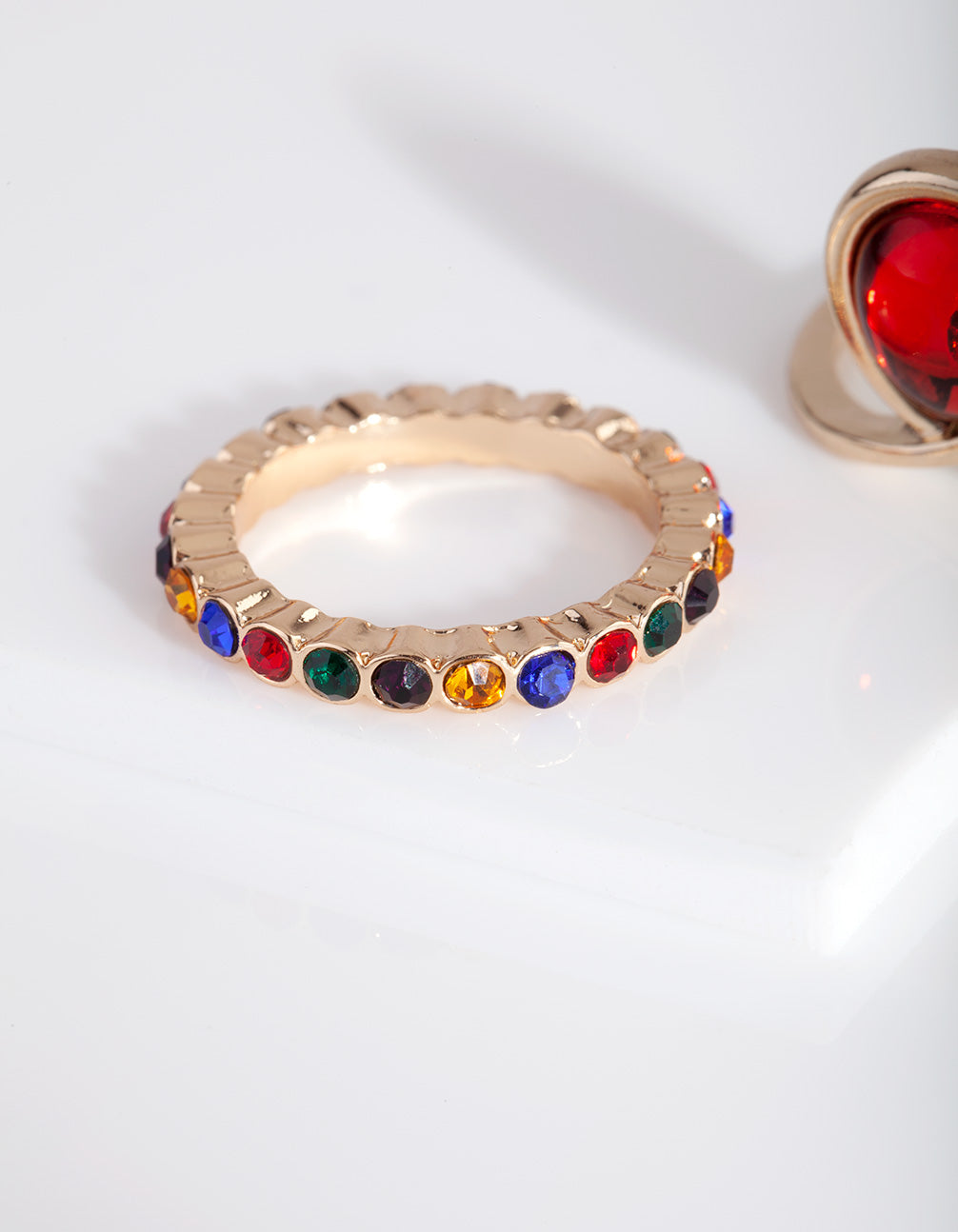 Gold Rainbow Diamante Red Ring Pack