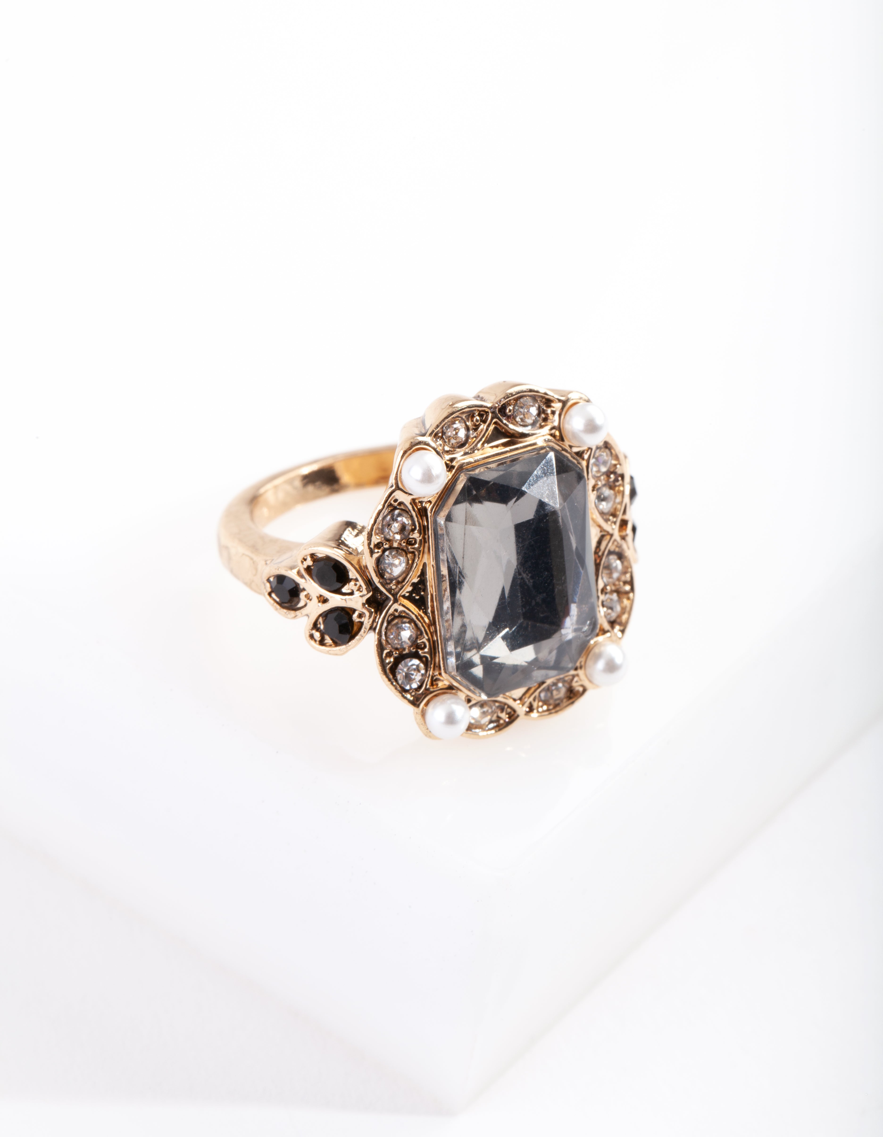 Make a statement with one of our stunning fashion rings. Stack with other styles for extra impact or wear alone for a refined addition to your ensemble. This ring features a diamante embellished large black stone design in a gold-tone setting.åÊ