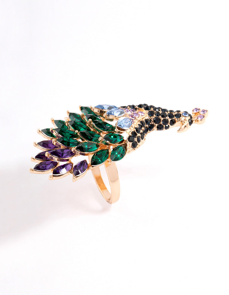 Gold Sparkly Peacock Ring