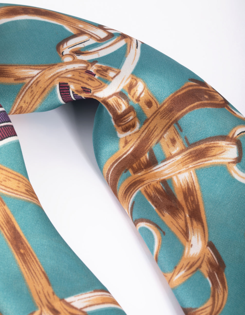 Scarves are the ultimate versatile accessory! Tie this chic piece to your ponytail, wear it Hollywood style with some chunky sunglasses, fashion it round your neck or wrap it around your handbag - the options are endless! This lovely scarf features a blue colour palette with a chain design.
