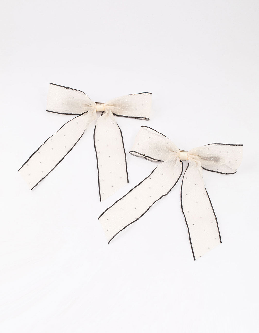 - This set of cream diamante hair bows comes in a pack of two.
