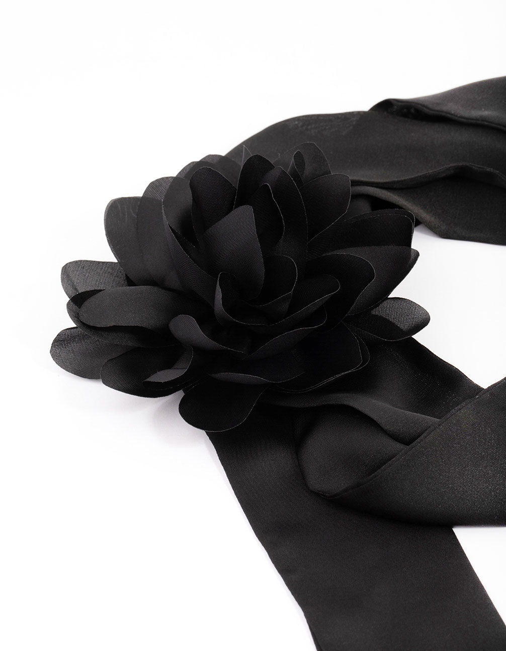 Black Fabric Rosette Long Scarf