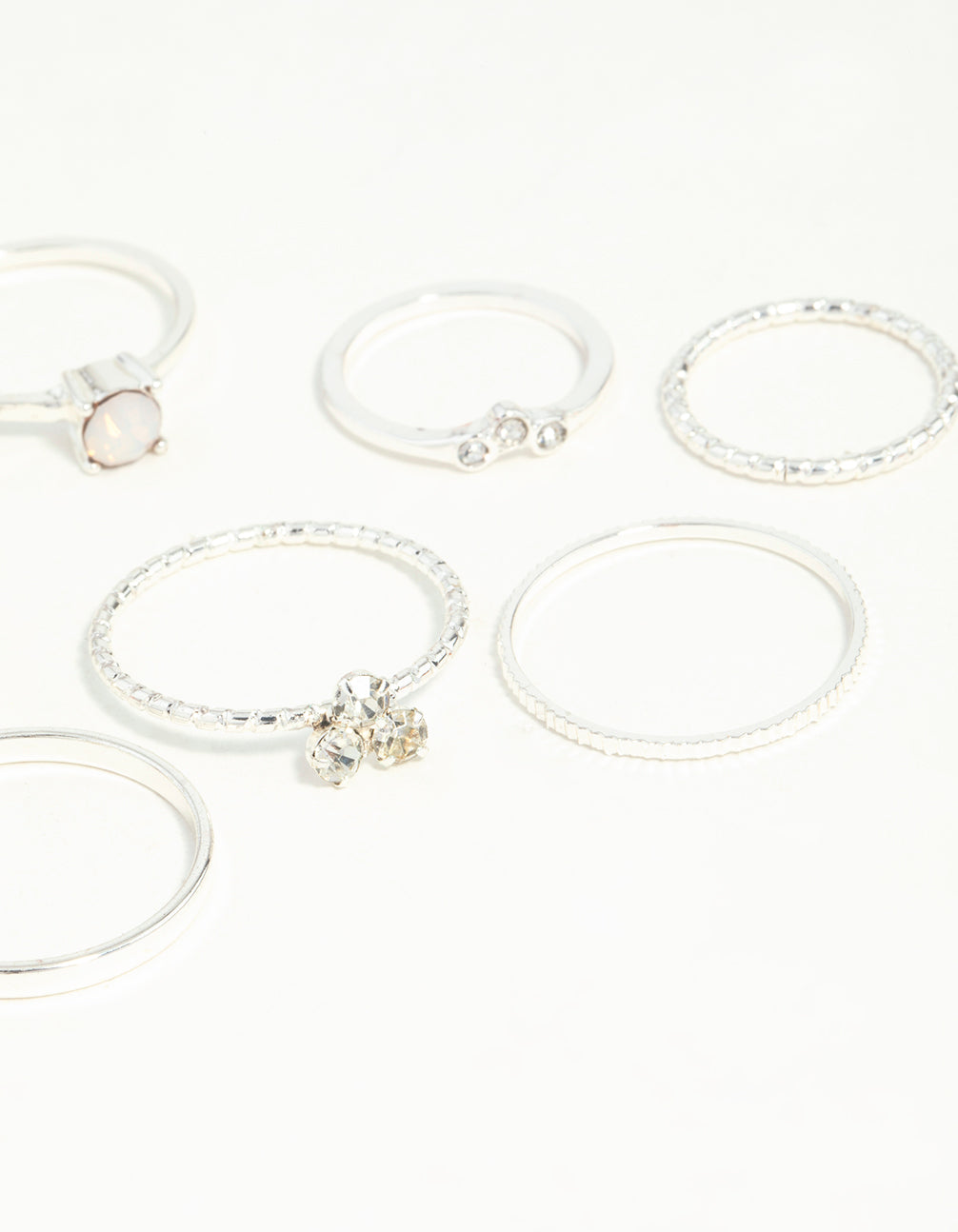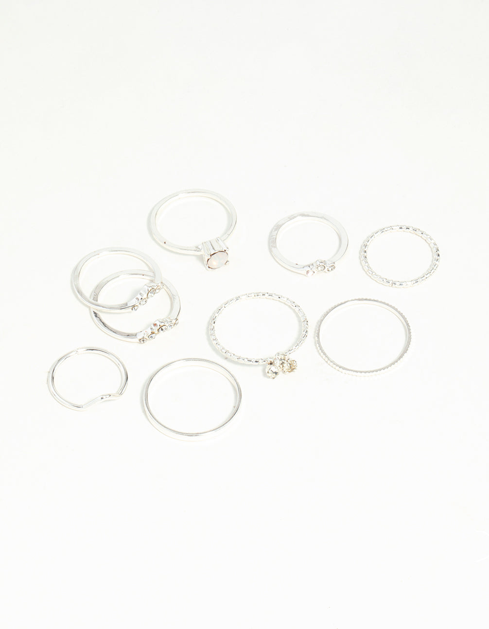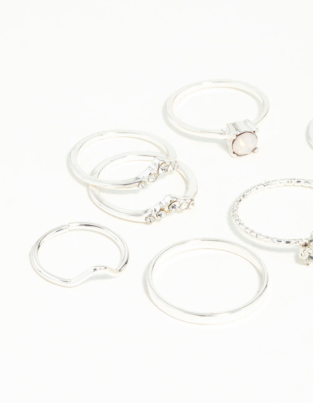 Round out your collection with silver-toned essential styles perfect for any occasion. This pack of rings feature a faux moonstone design.