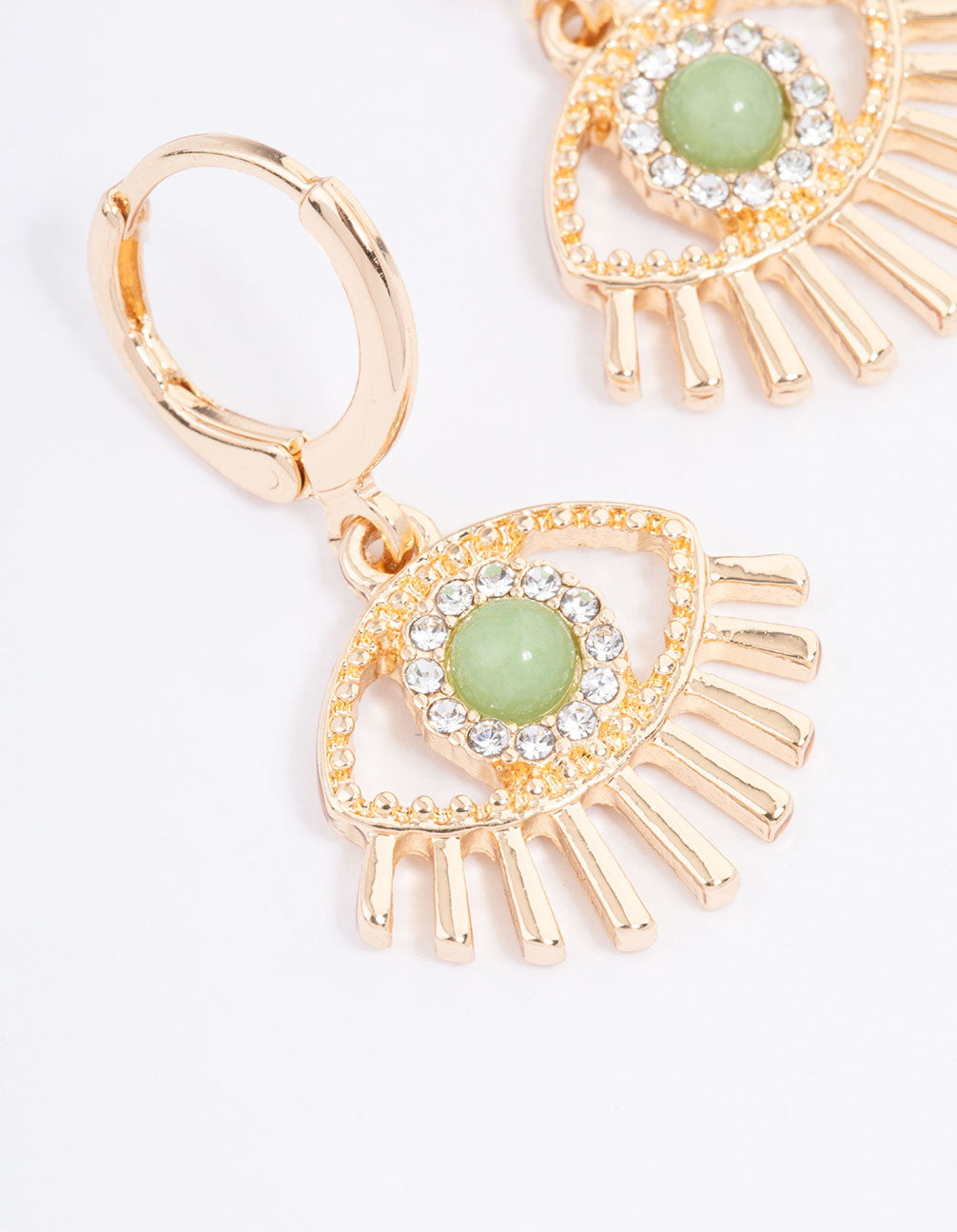 Gold Green Aventurine Diamante Eye Huggie Earrings