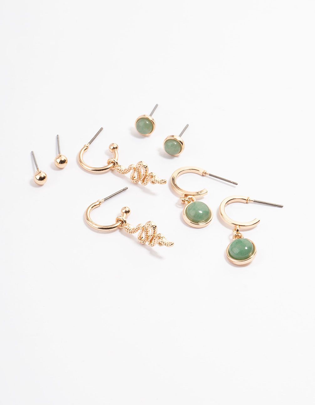 Gold Green Aventurine Snake Stack Earring Pack