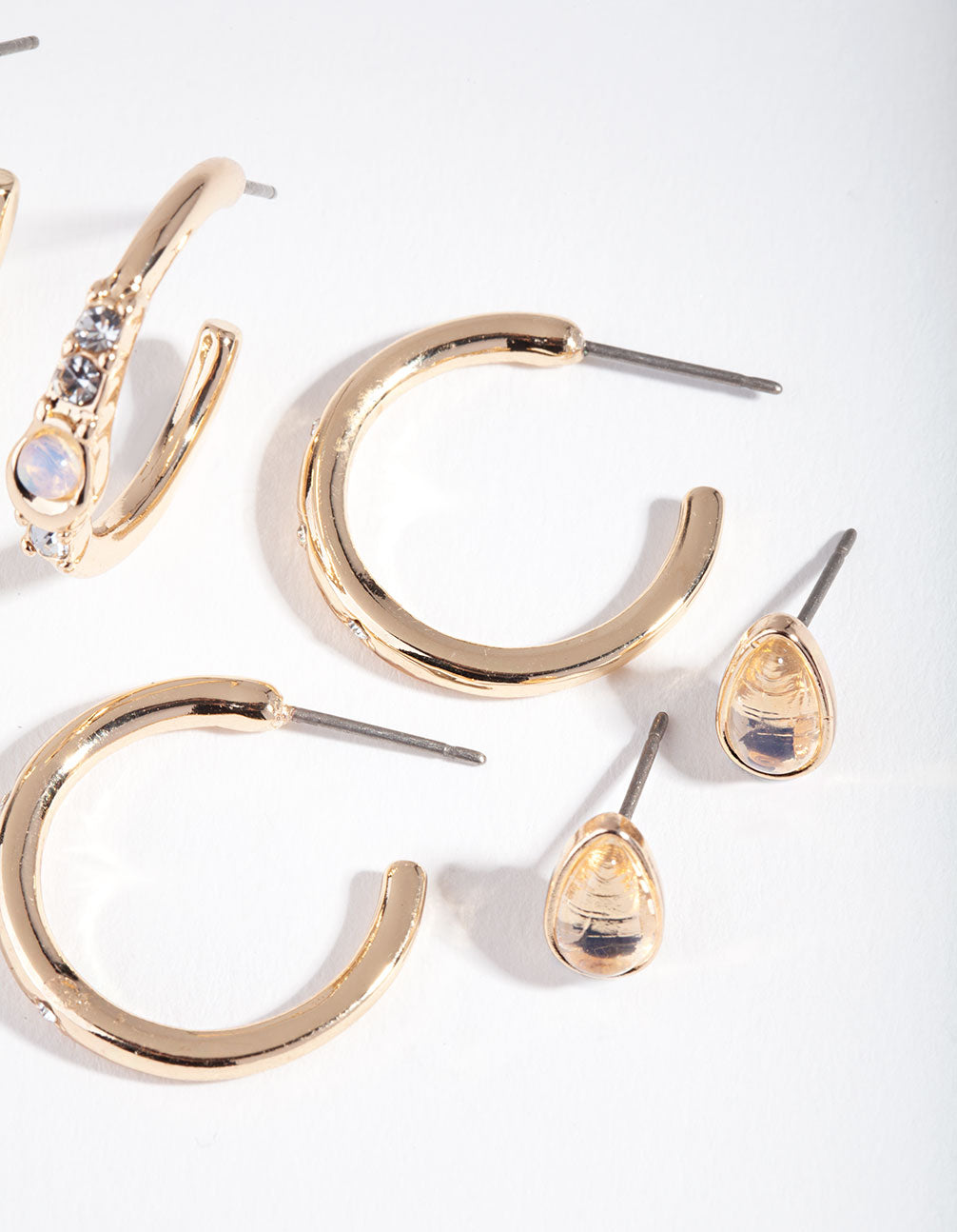 Say hello to the latest and greatest trend: Ear Stacking! We've got you covered with this stunning gold-toned large hoop pack featuring cratered stones with semi-precious elements.