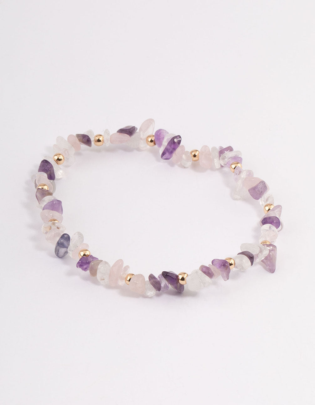 Accessorise with unique pieces from our Semi Precious Collection! This stretch stone bracelet features a range of authentic, mixed semi-precious stones. Style yours with some adorning natural accessories for a personal touch.