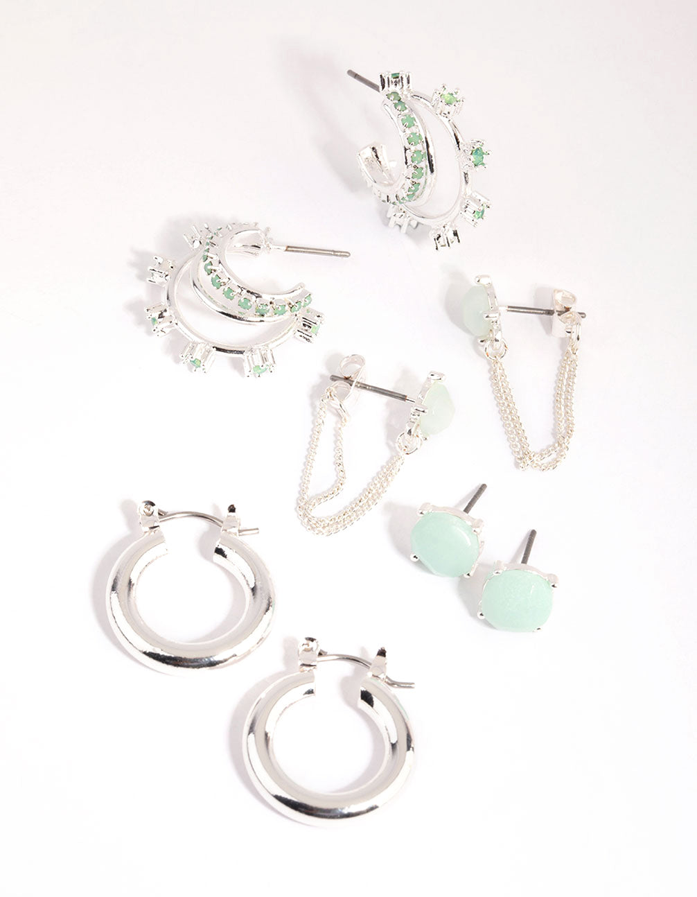 Silver Amazonite Hoop Earring Stack Pack