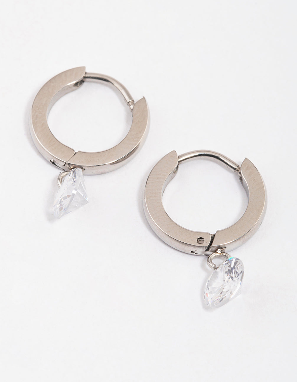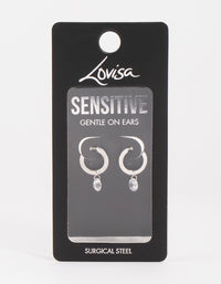 Rhodium Surgical Steel Floating Cubic Zirconia Hoop Earrings