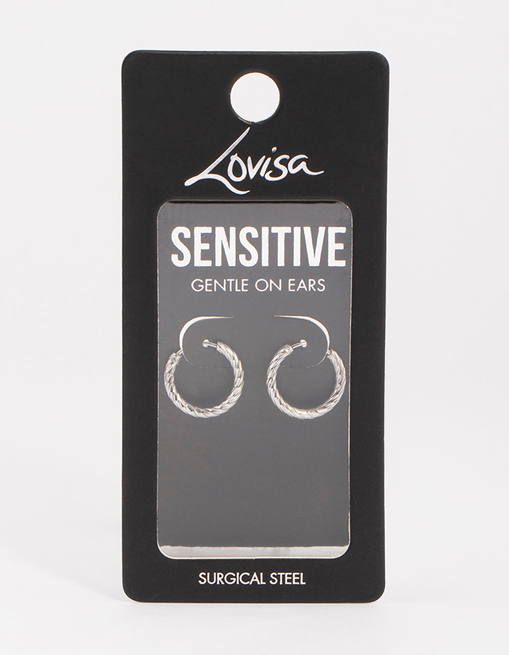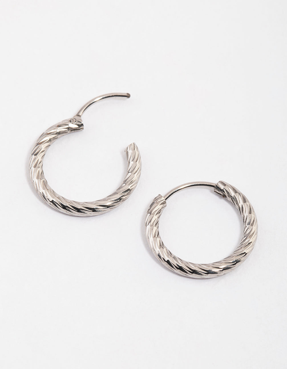 Style these twisted, surgical steel hoop earrings with a textured pendant necklace for an on-trend look.