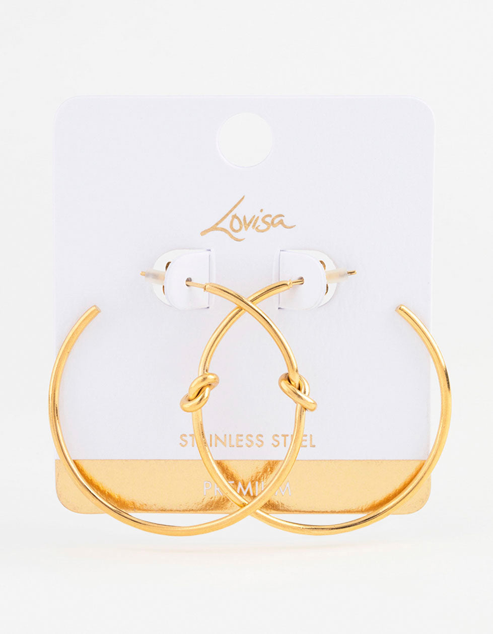 Waterproof Gold Plated Stainless Steel Classic Knotted Hoop Earrings